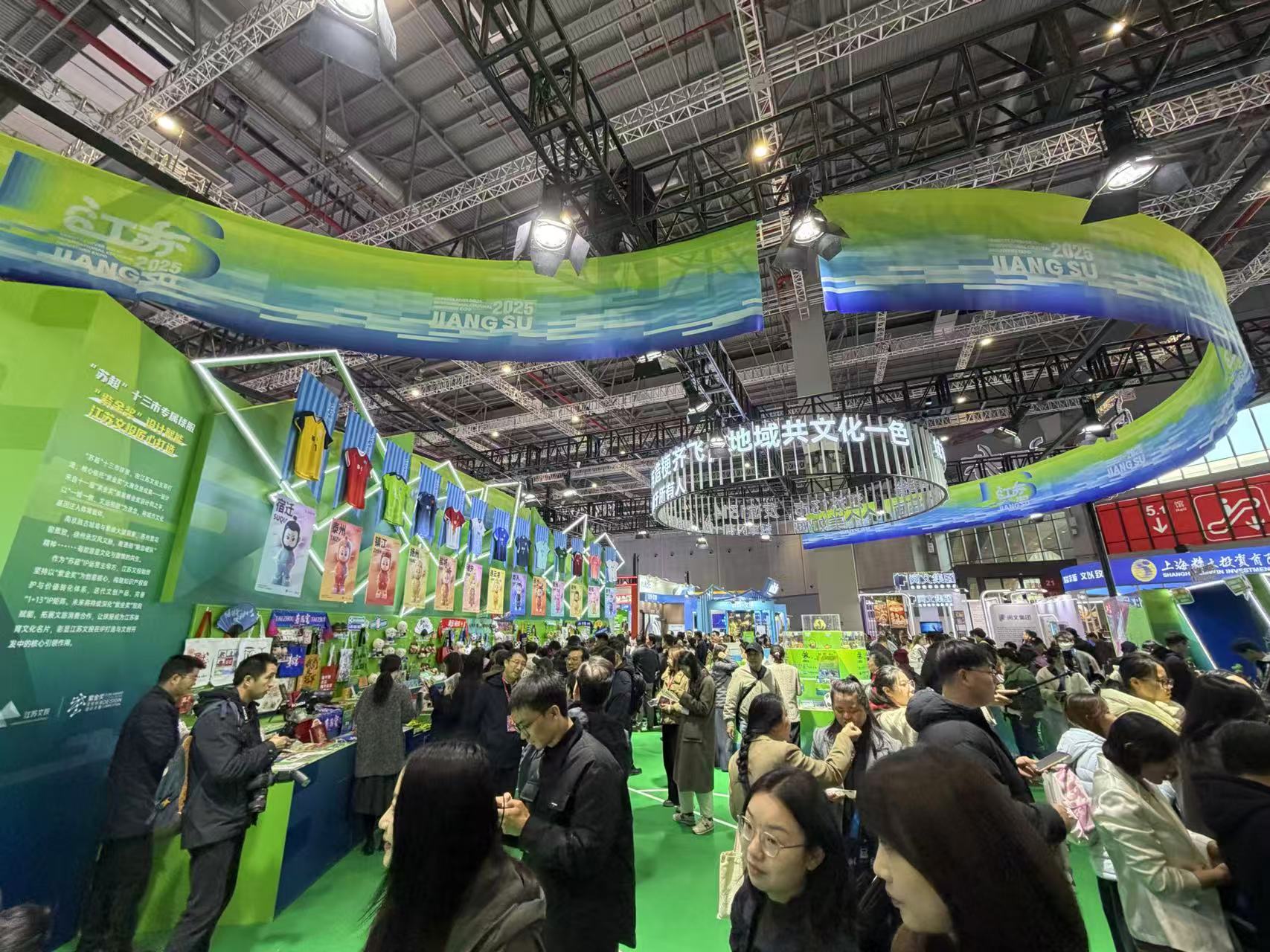 江苏展区聚焦现象级IP“苏超”带来系列文创产品,吸引观众打卡消费。劳动报记者贡俊祺摄影