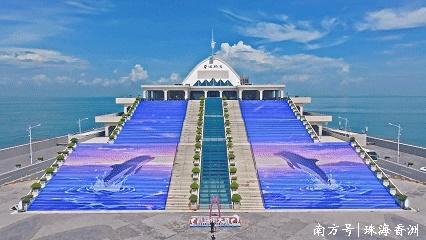 陆地沿情侣路观光,登蓝海豚岛,观赏大桥“中国结”“海豚塔”“风帆塔”等标志性景观,了解大桥建设历程。