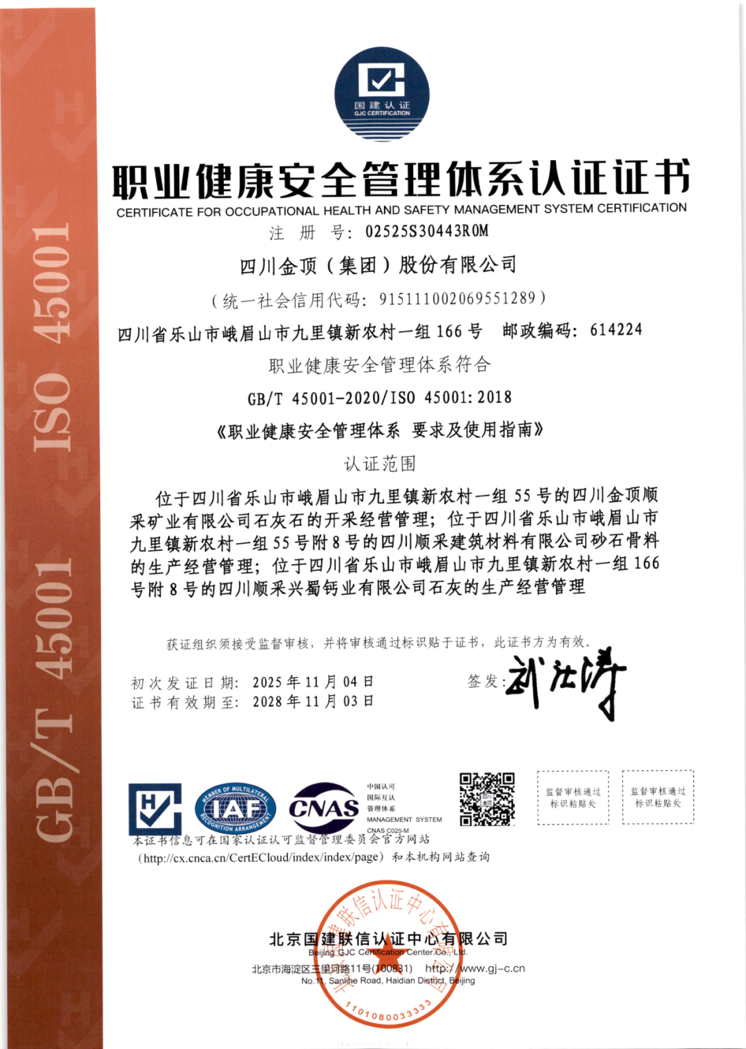 GB/T 45001(ISO 45001)职业健康安全管理体系;