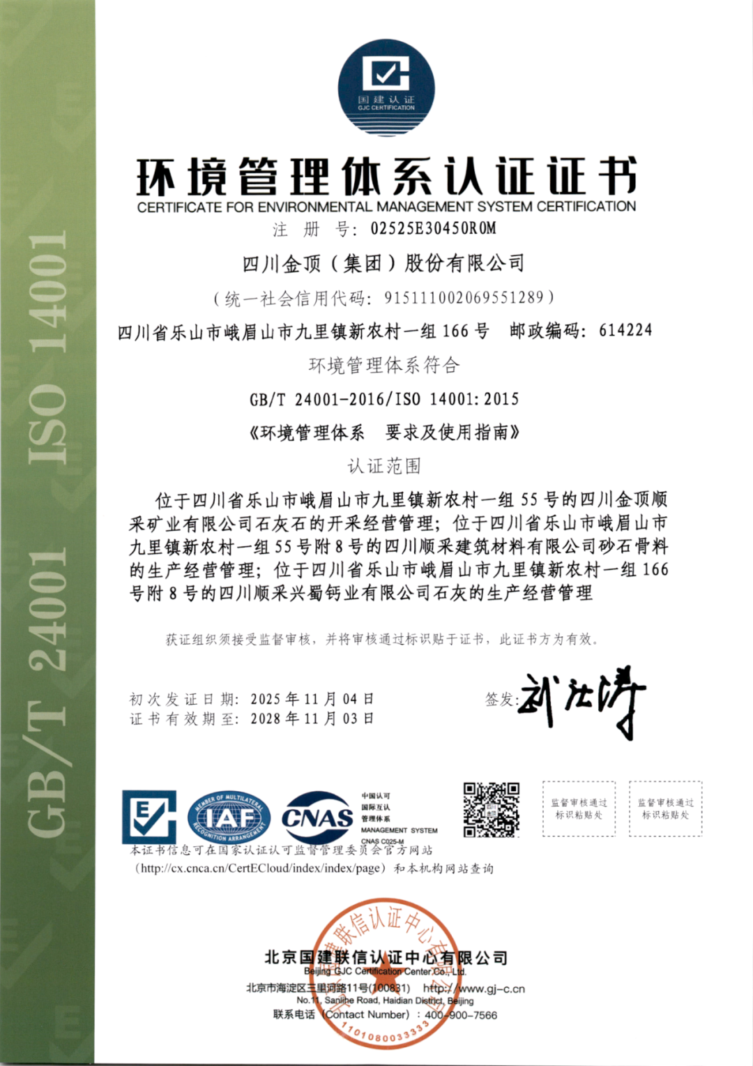 GB/T 24001(ISO 14001)环境管理体系;
